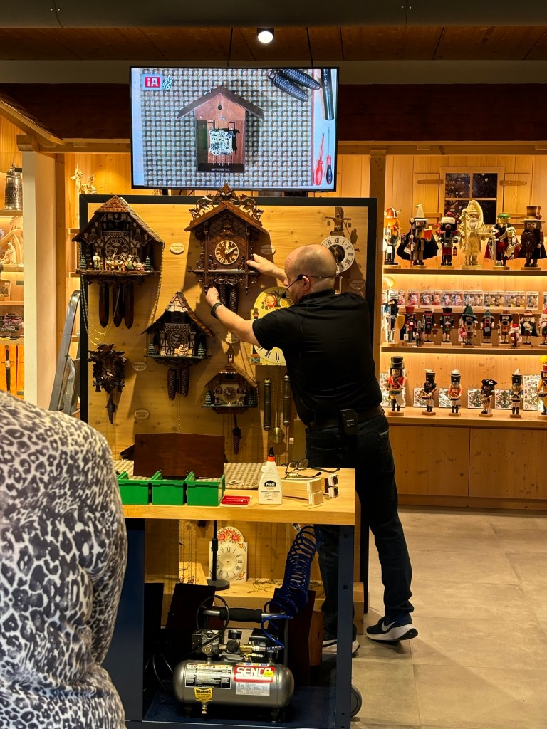 We wandered around the traditional farmhouses, listened to a talk on the traditional dress and making butter, had a lovely lunch, and watched how cuckoo clocks are made.