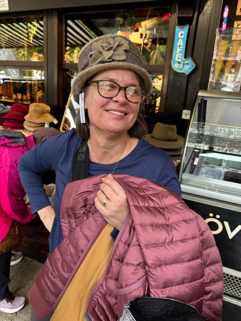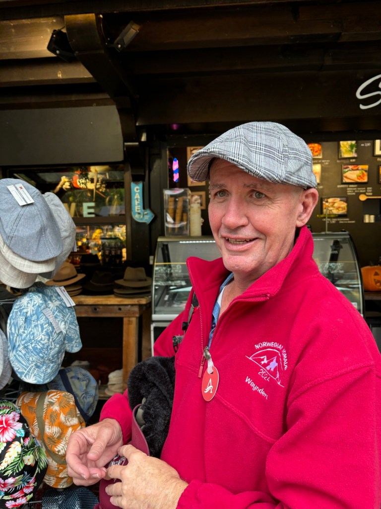 Much time was spent trying on hats. Donna, Mark and Wayne added to their luggage.