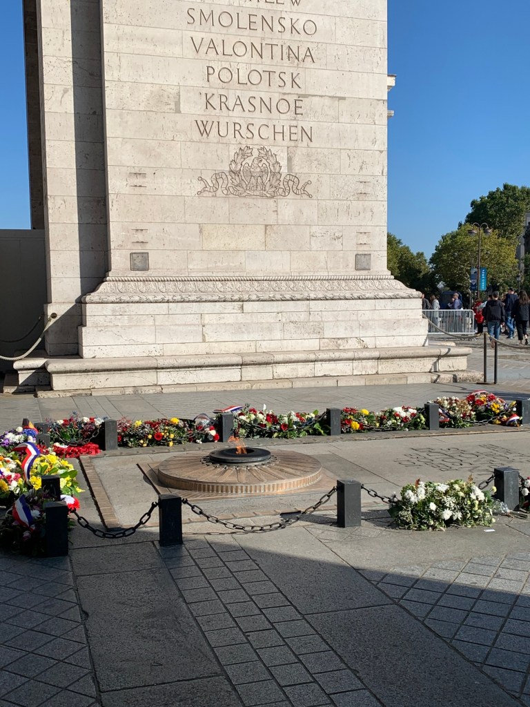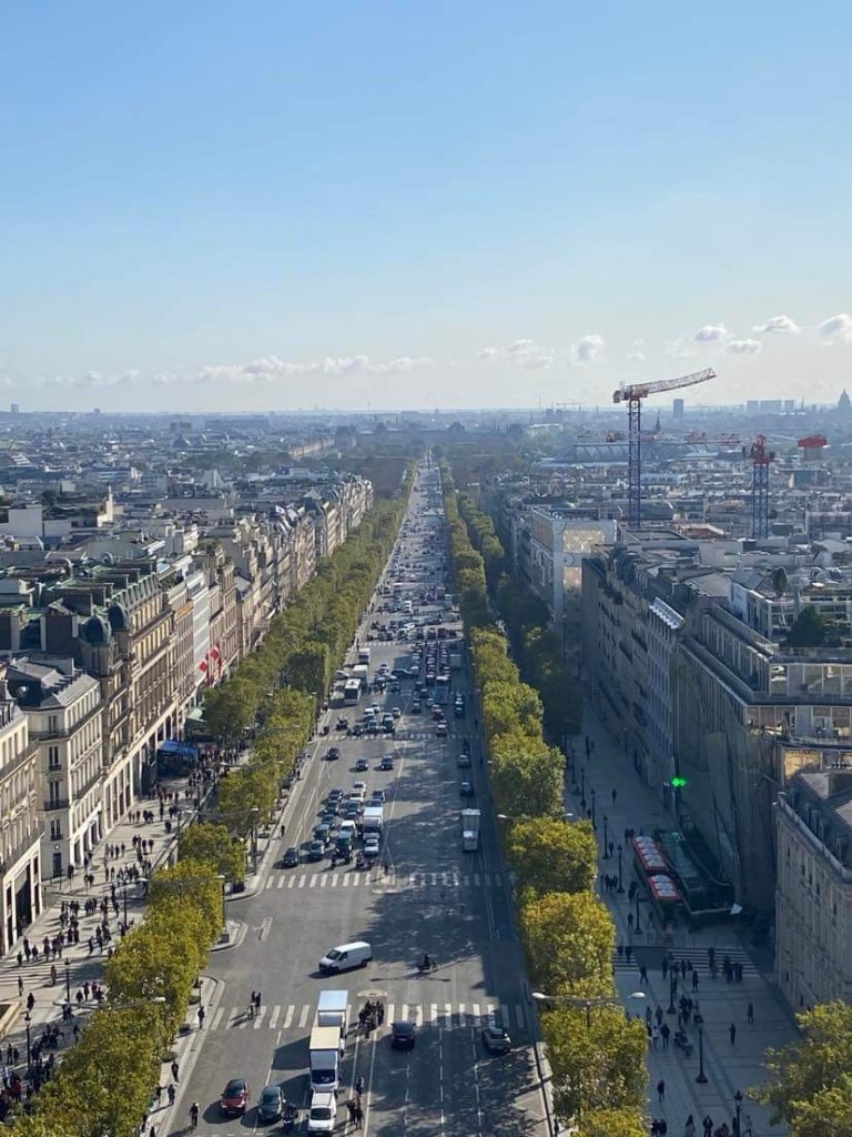 We bussed to the Arc de Triomphe and climbed the internal stairs. What a view with all the roads leading to it at the centre.