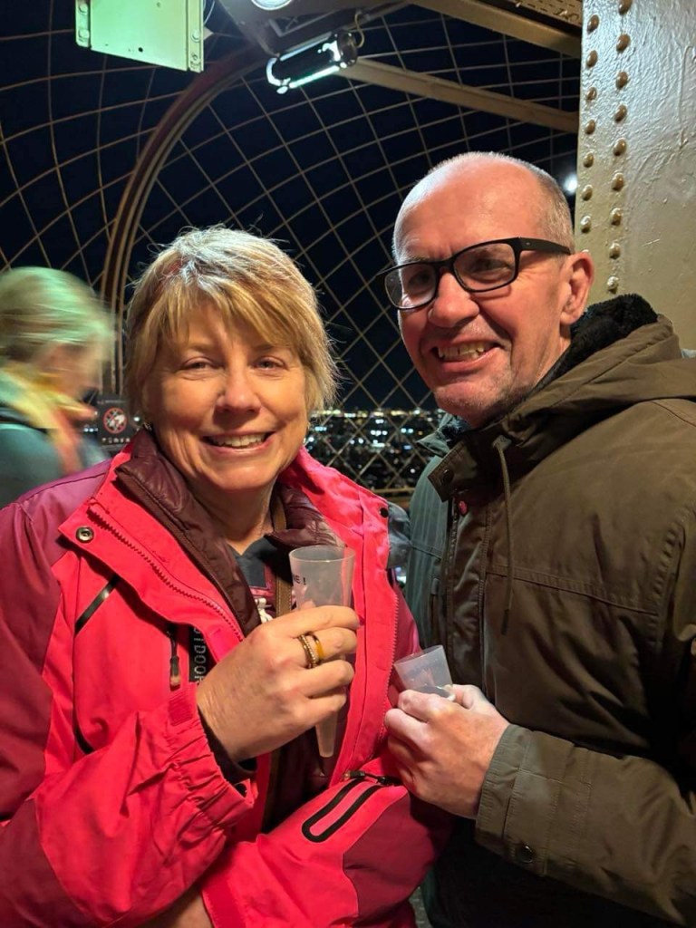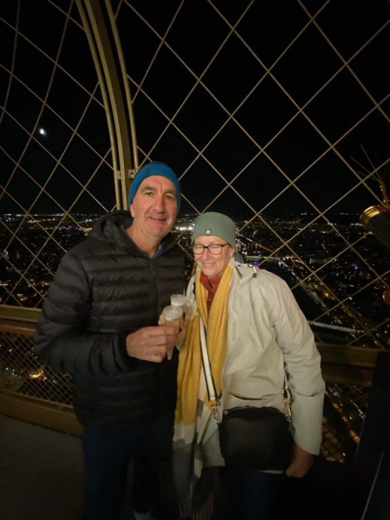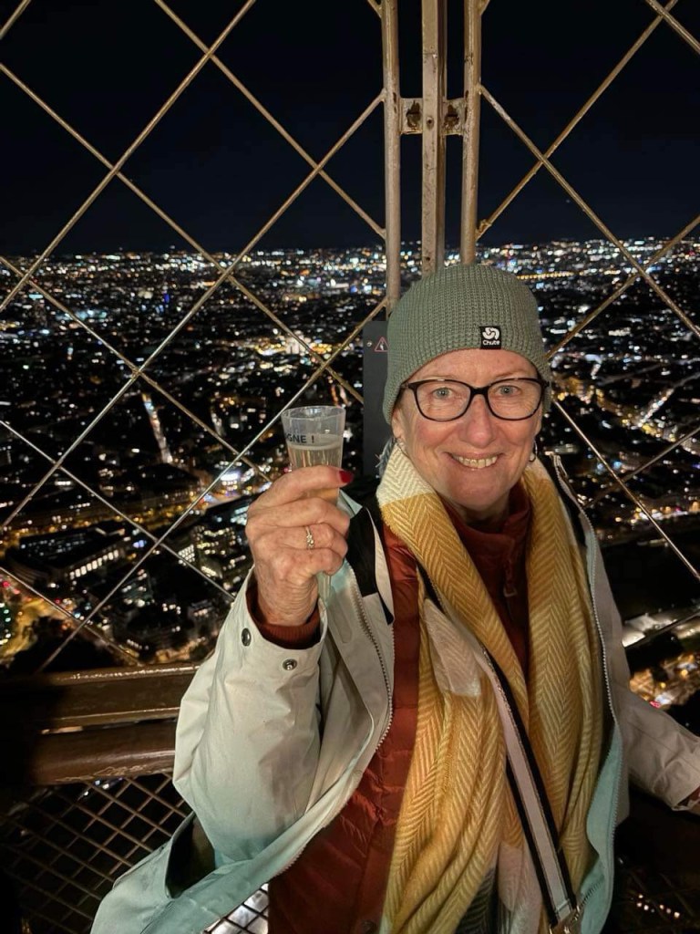 In the evening, we went to the Eiffel Tower to achieve one of Donna’s bucket list items – to the top for a glass of champagne.