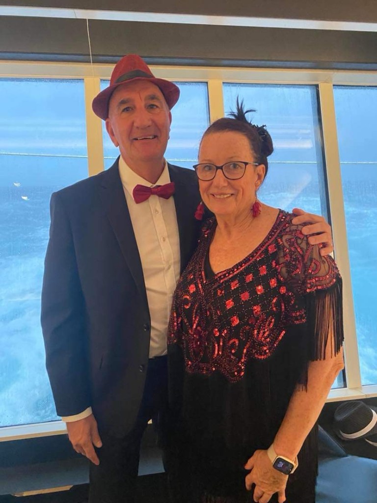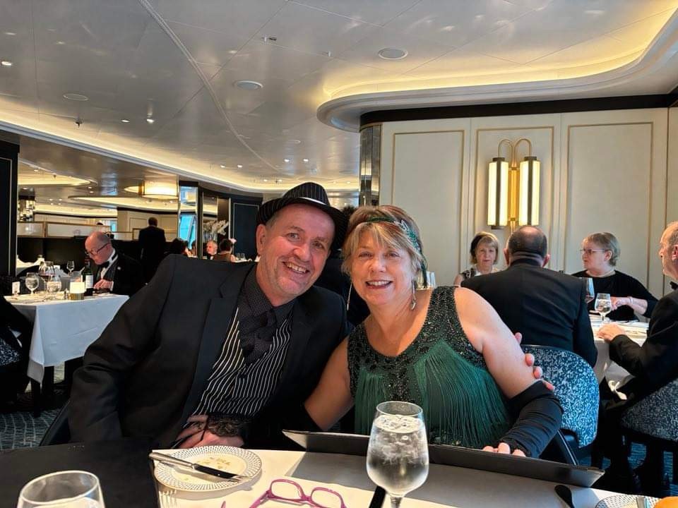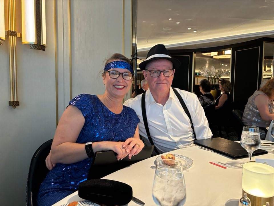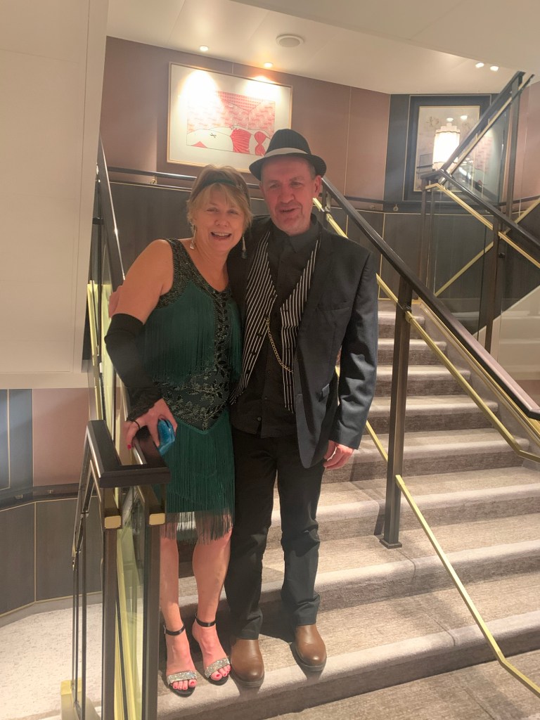 Finally got to our 20s night and Donna had to leave early. The rocking and rolling of the ship was exacerbated in the lower level dining room.