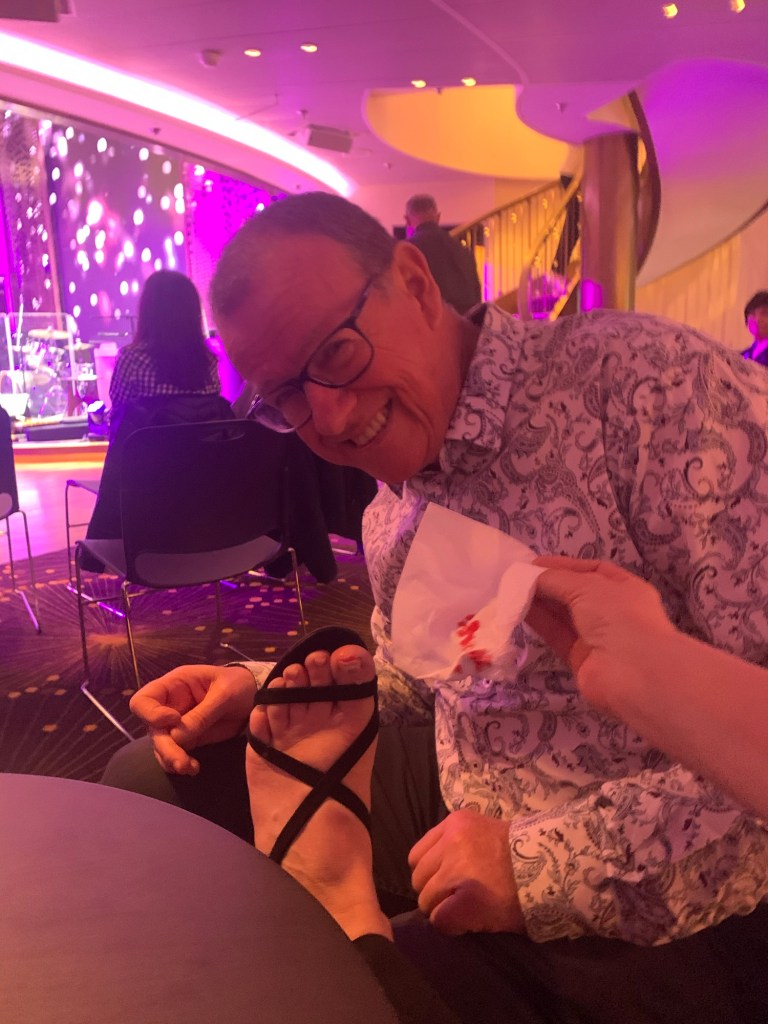 We dressed up one final time and went to dinner to thank our lovely wait staff – Ramir, Benny and Oisin.